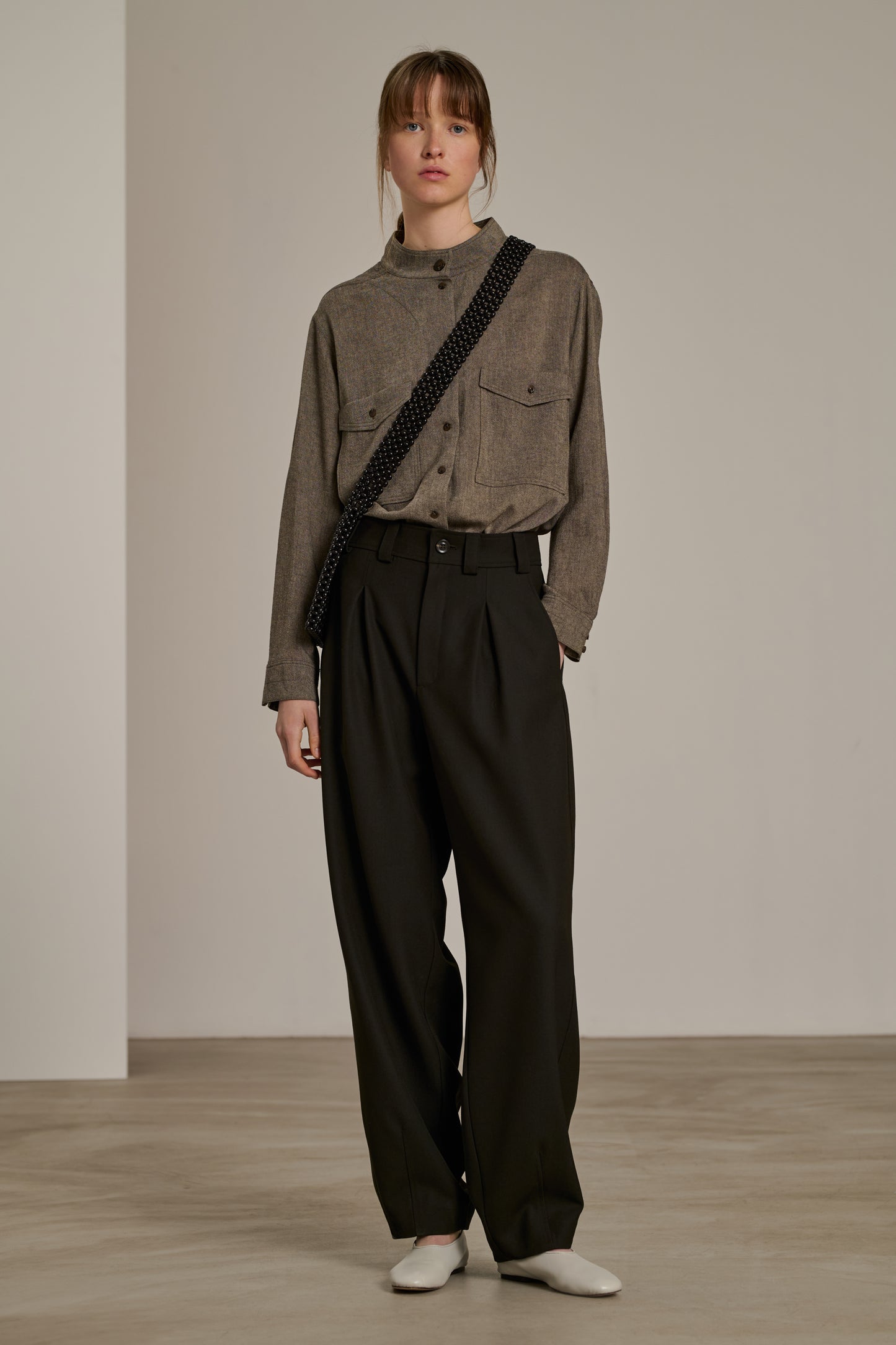 BLOSSOM is a wool crepe blouse that combines sophistication and modernity. The subtle cuts on the front, shoulders and sleeves add a distinctive detail, perfect for a chic and contemporary style.