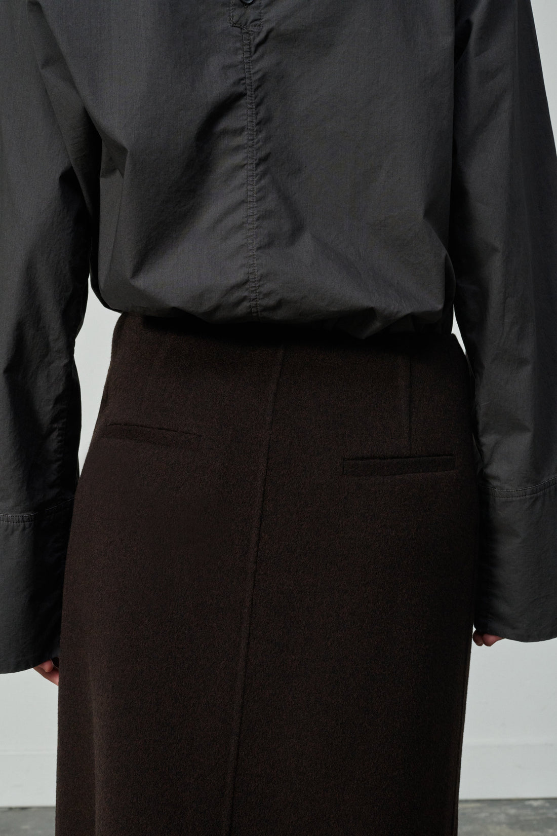 Asymmetrical double-sided wool wrap skirt mottled brown