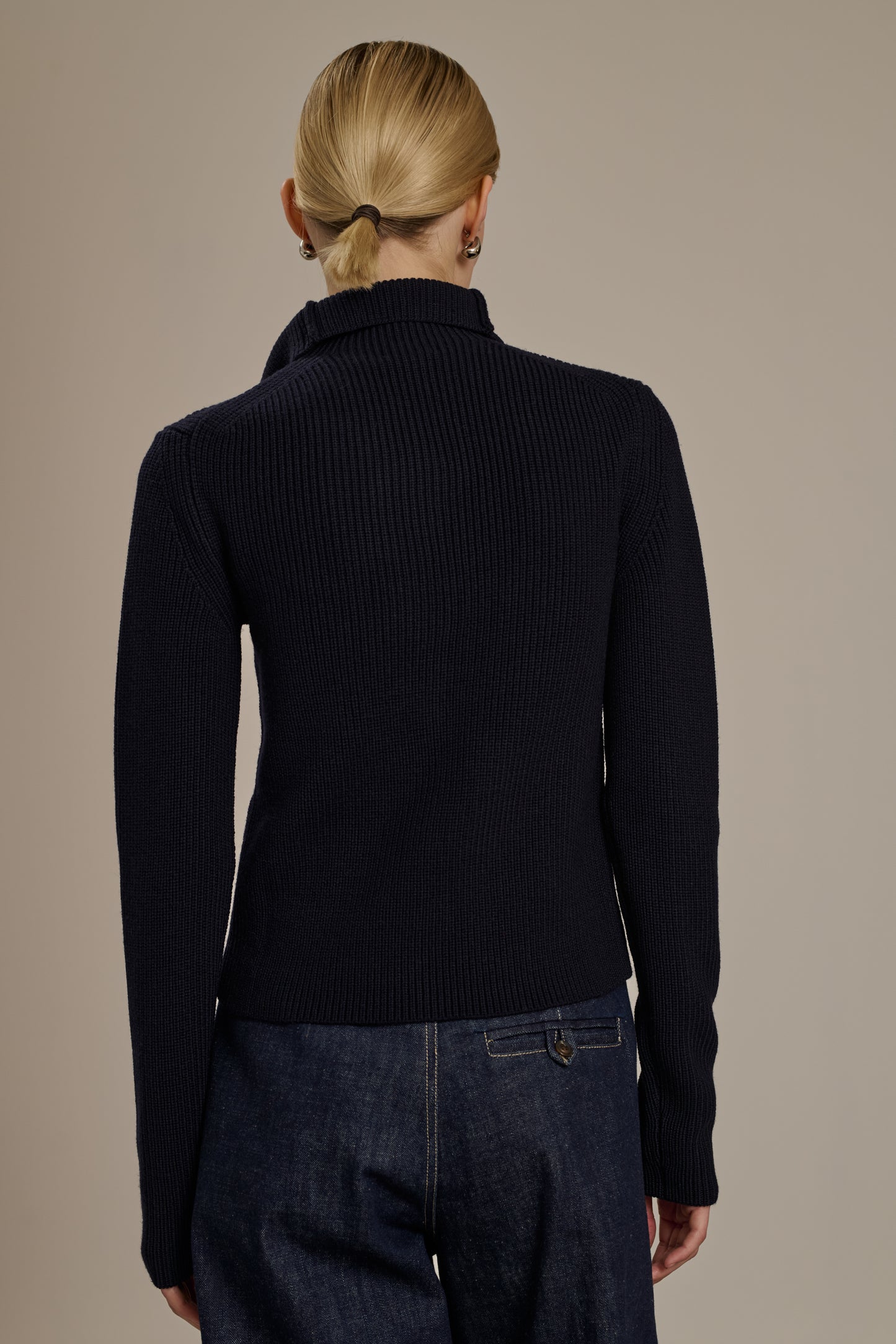 Veste ajustée en maille côtelée, en laine mérinos bleu marine.