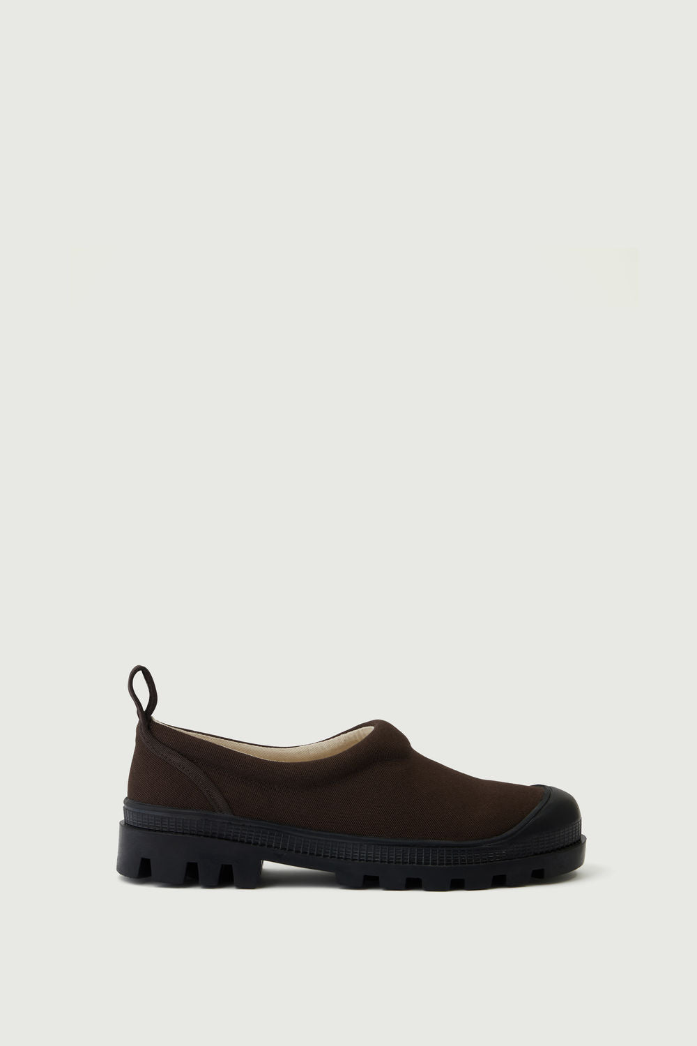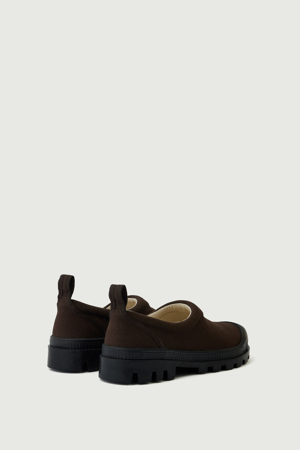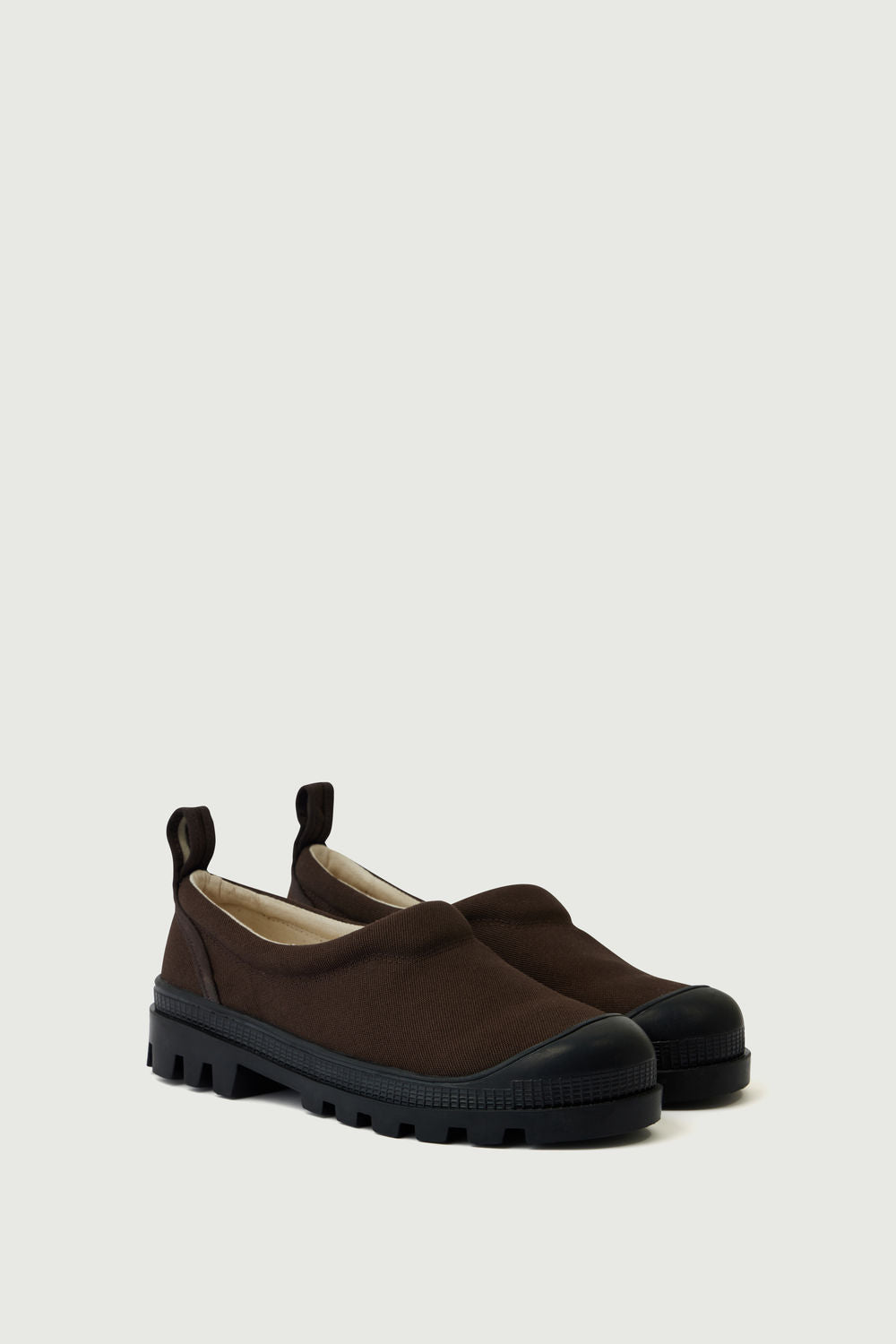 - Bottillons en canvas marron avec semelles crantées en caoutchouc noir