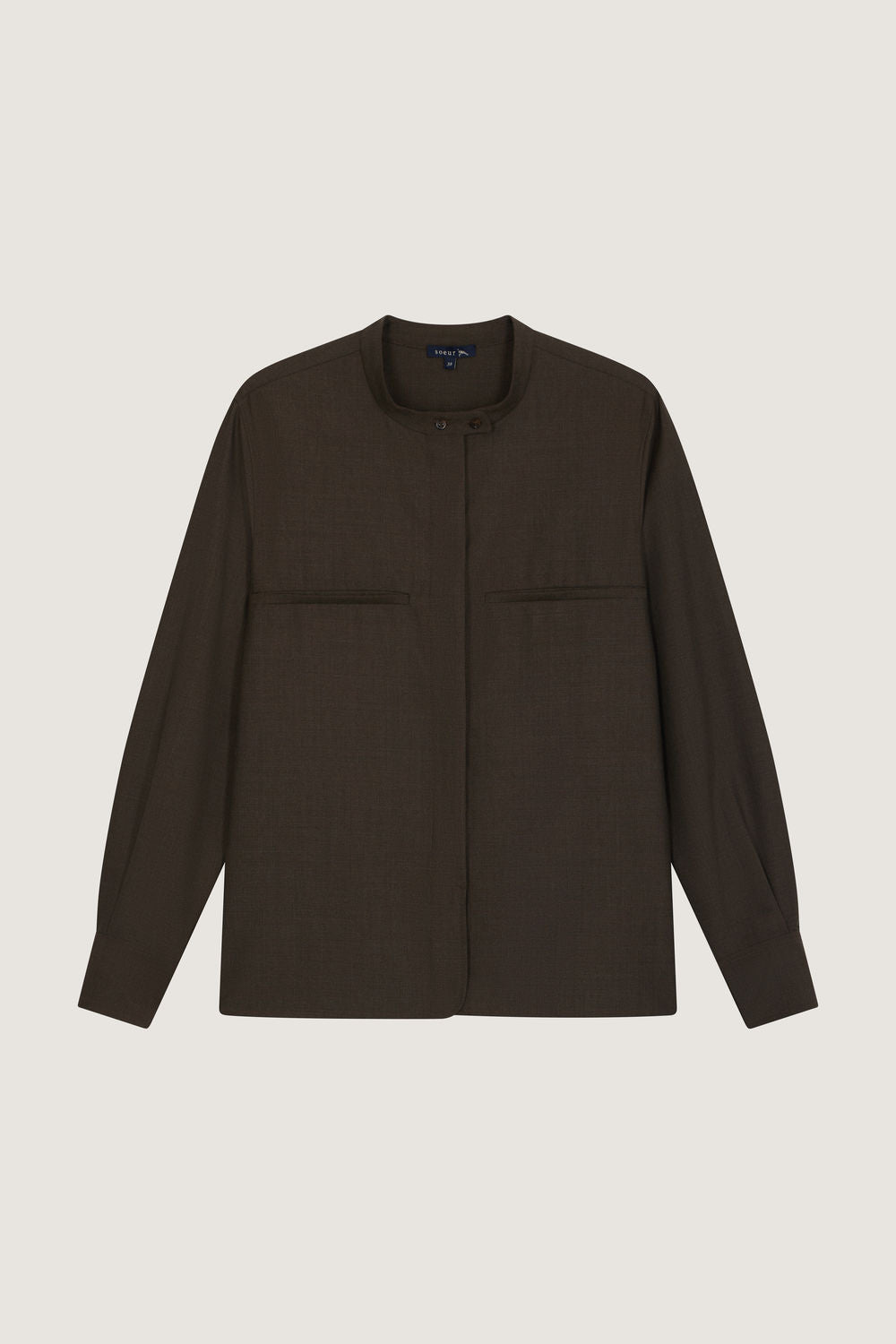 Chemise en toile de laine - Coupe droite- Encolure ronde avec patte de boutonnage- Poches passepoilées- Ouverture devant avec patte de boutonage cachée- Poignets de chemise boutonnés Cette pièce est certifiée OEKO-TEX Standard 100.