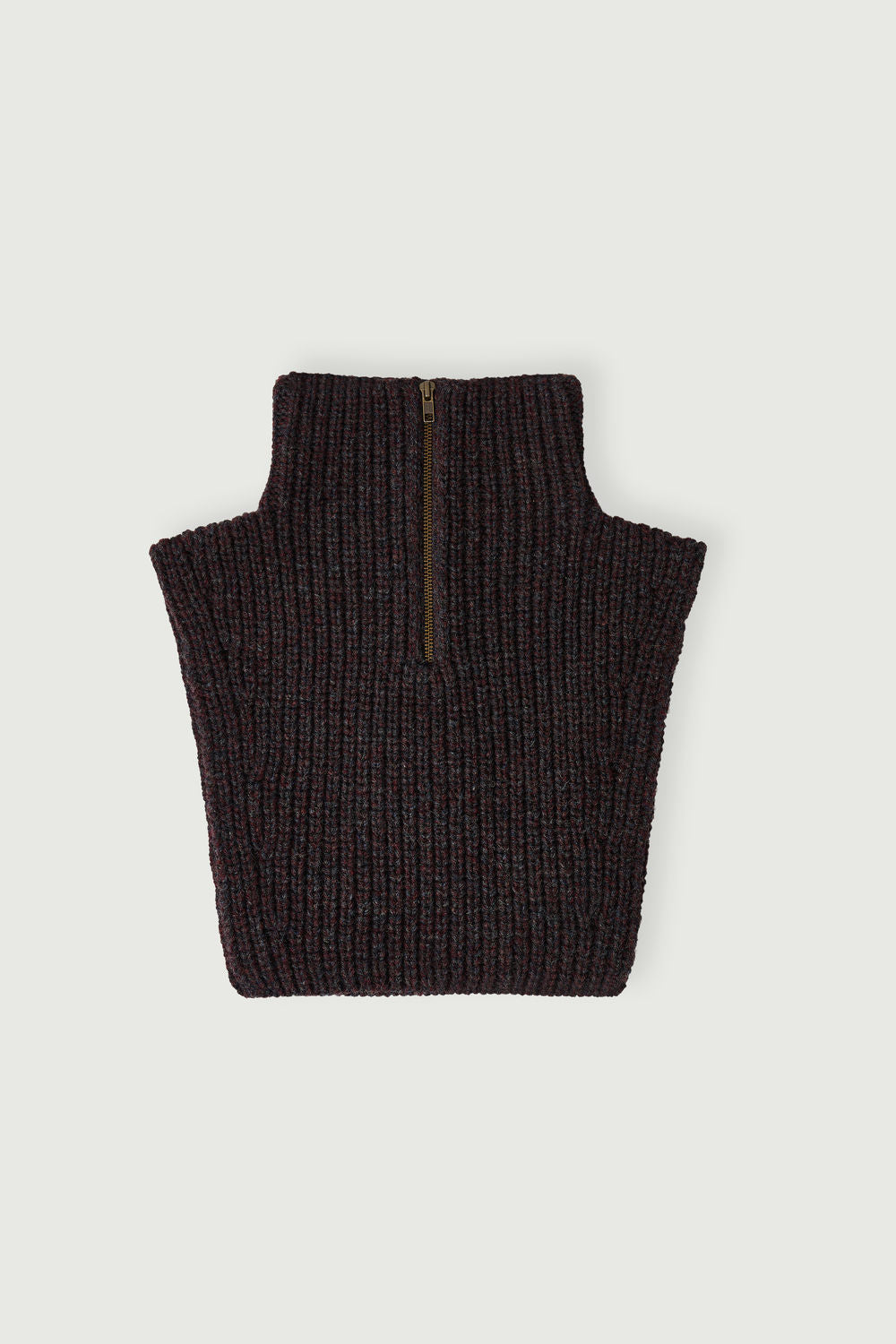 Col montant zippé en laine gris/bordeaux gris/bordeaux
