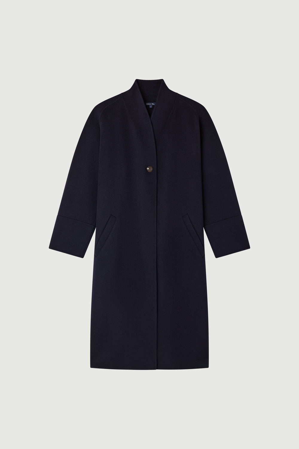 CESAR est un manteau long en laine double face mélangé avec du cachemire, offrant un volume droit et élégant. Il présente un col montant boutonné d'un bouton apparent, que l'on peut également porter plié pour varier les styles. La fermeture se fait avec une ceinture amovible. Le double face en laine et cachemire assure chaleur et douceur.