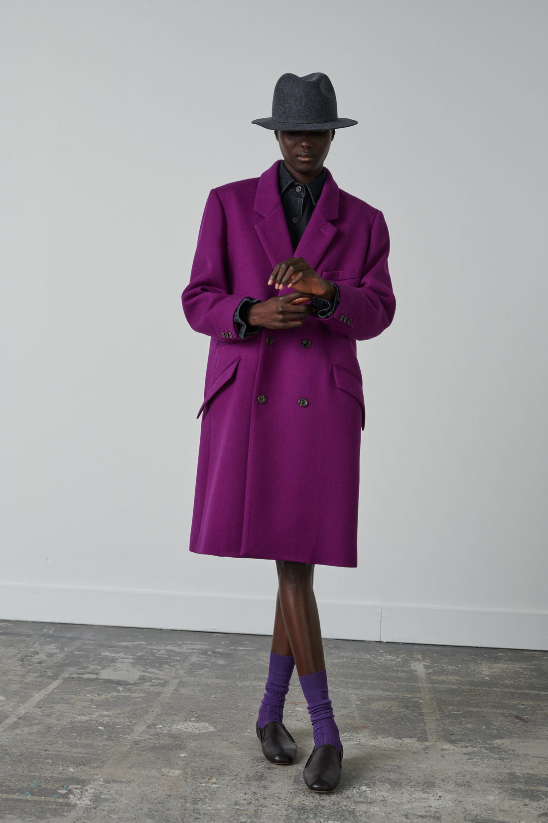 WADDEN est un manteau dont les détails évoquent le vestiaire masculin. Il est réalisé dans un lainage épais et luxueux, à la texture "grain de poudre" qui met en lumière son coloris fuchsia exceptionnel. Ce manteau est une pièce sophistiquée et luxueuse grace à son tissu d'exception.