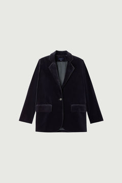CELESTIN est un pantalon en velours lisse gris anthracite aux reflets gris bleu. Taille haute, jambes évasées, il dispose de poches avant et arrière.