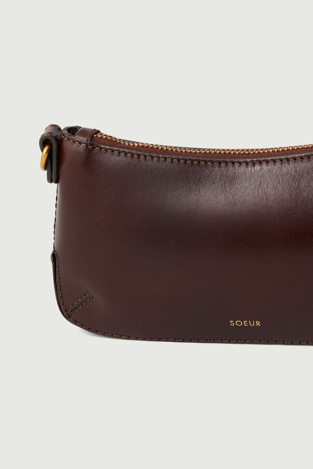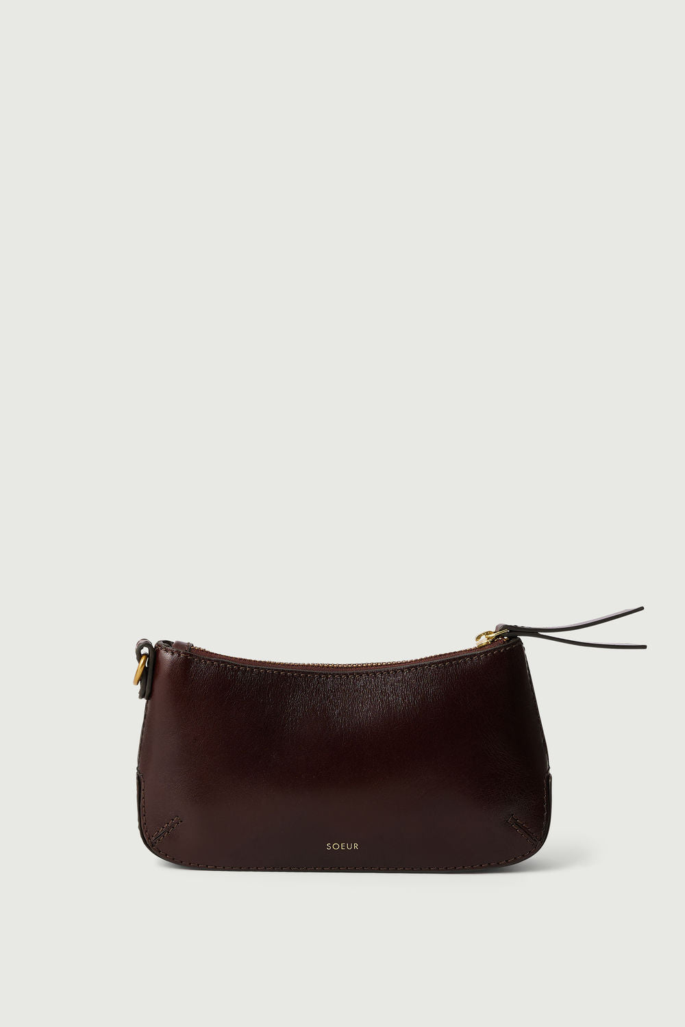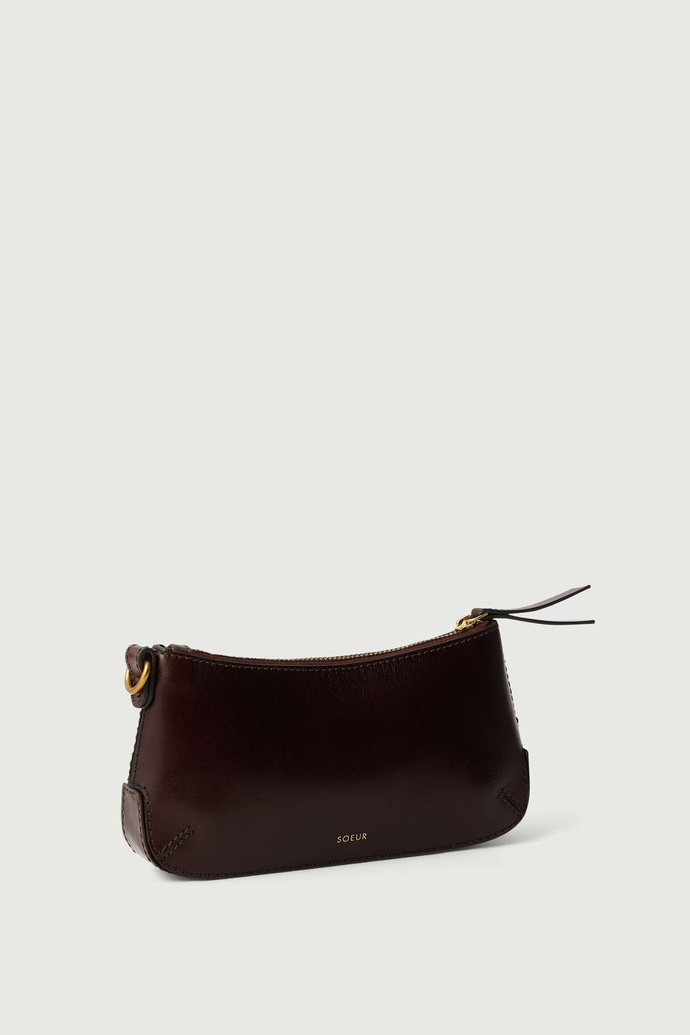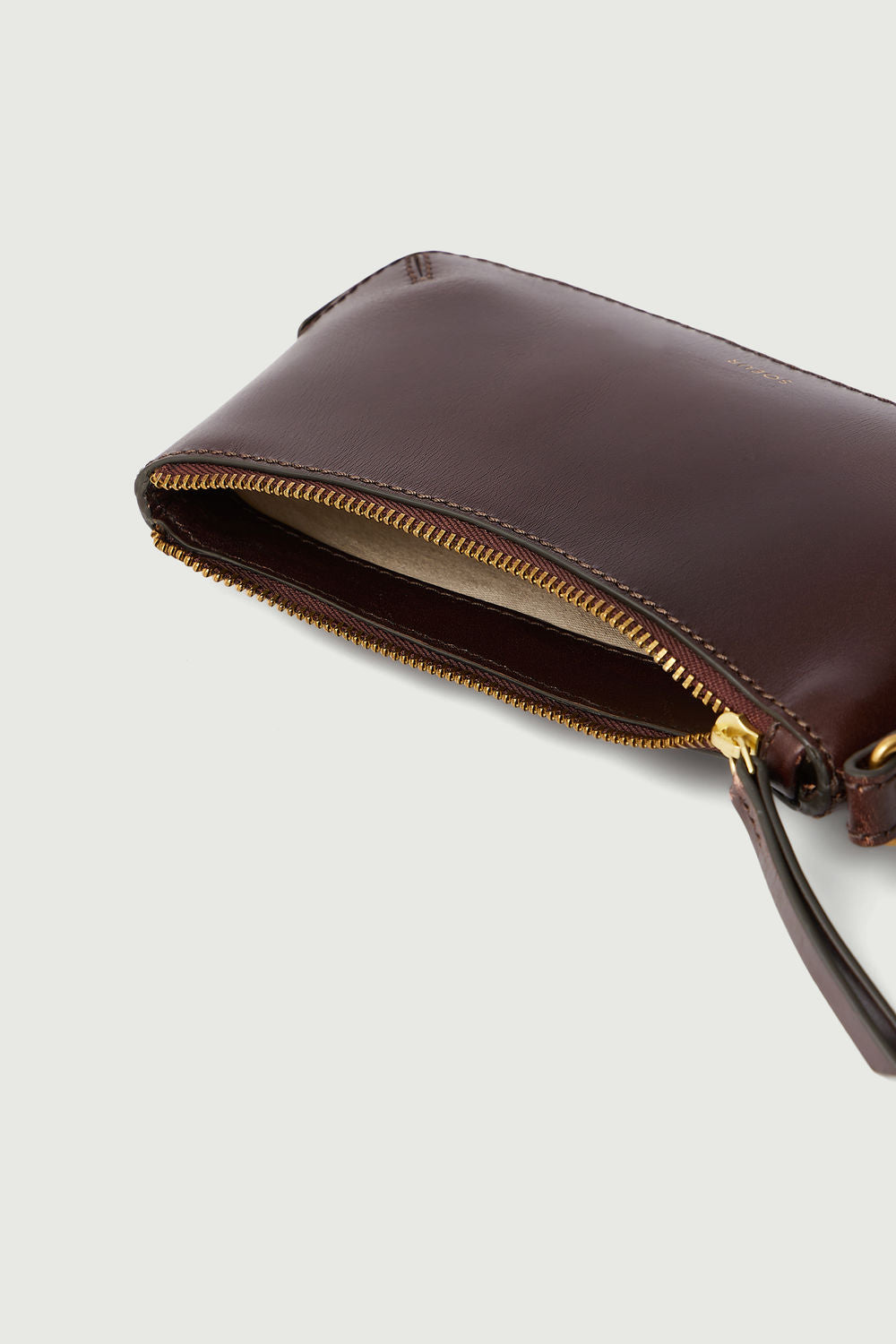 - Porte-monnaie zippé en cuir glossy marron