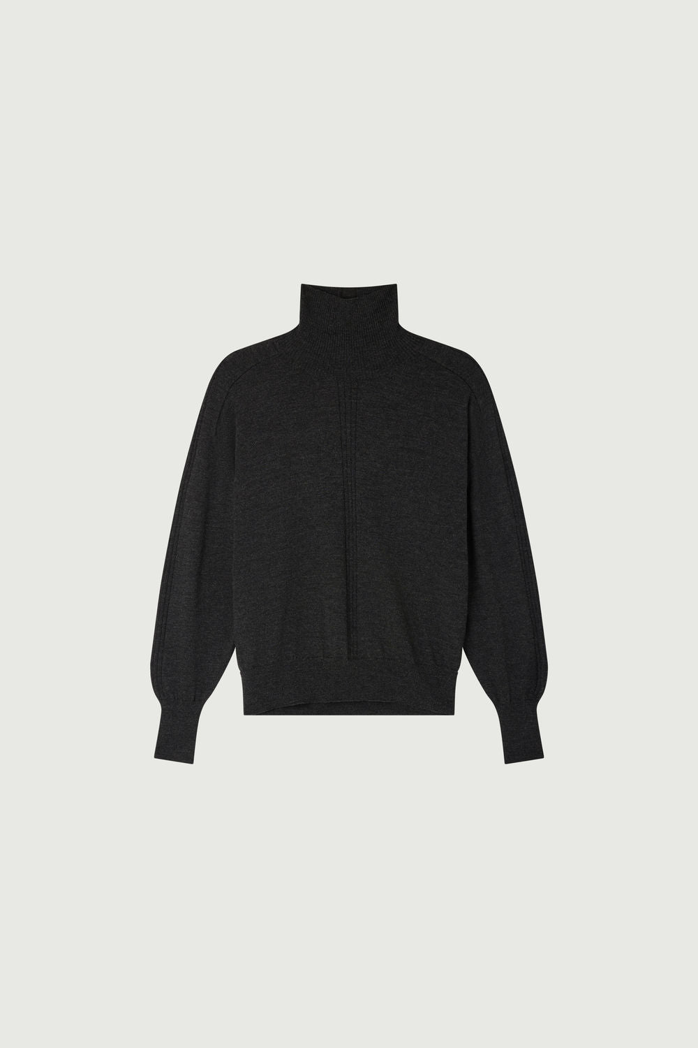 NORD est un pull en laine mérinos qui s'intègre parfaitement dans un vestiaire intemporel. Ce col roulé oversize offre une coupe ample et confortable, à porter à même la peau ou en superposition. De nombreuses finitions signent son identité Soeur : un jeu de côtes court au-devant et le long des manches, le col et les poignets sont tricôtés en côtes fines.