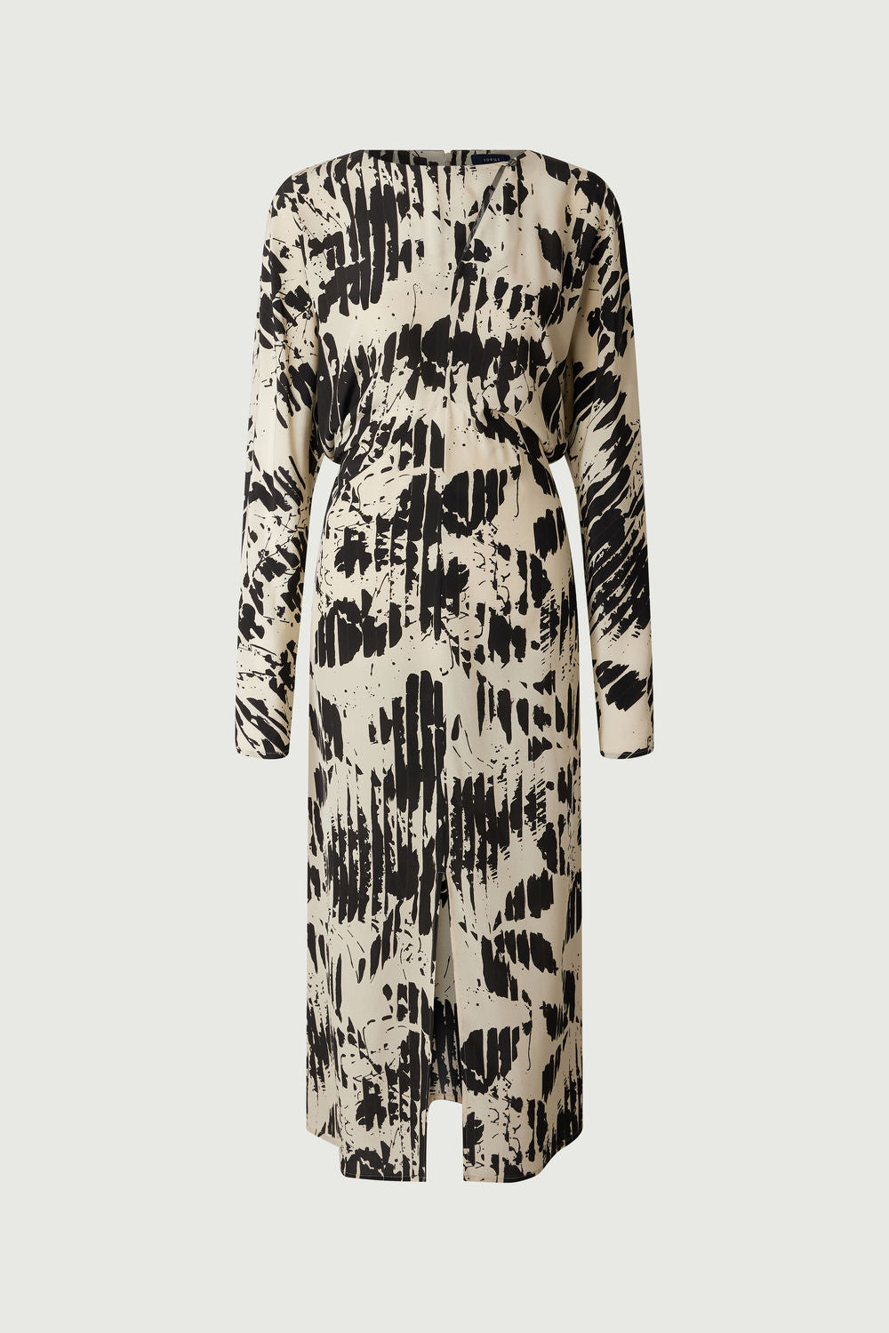 Robe imprimé en crêpe de soie jaune pâle/noir