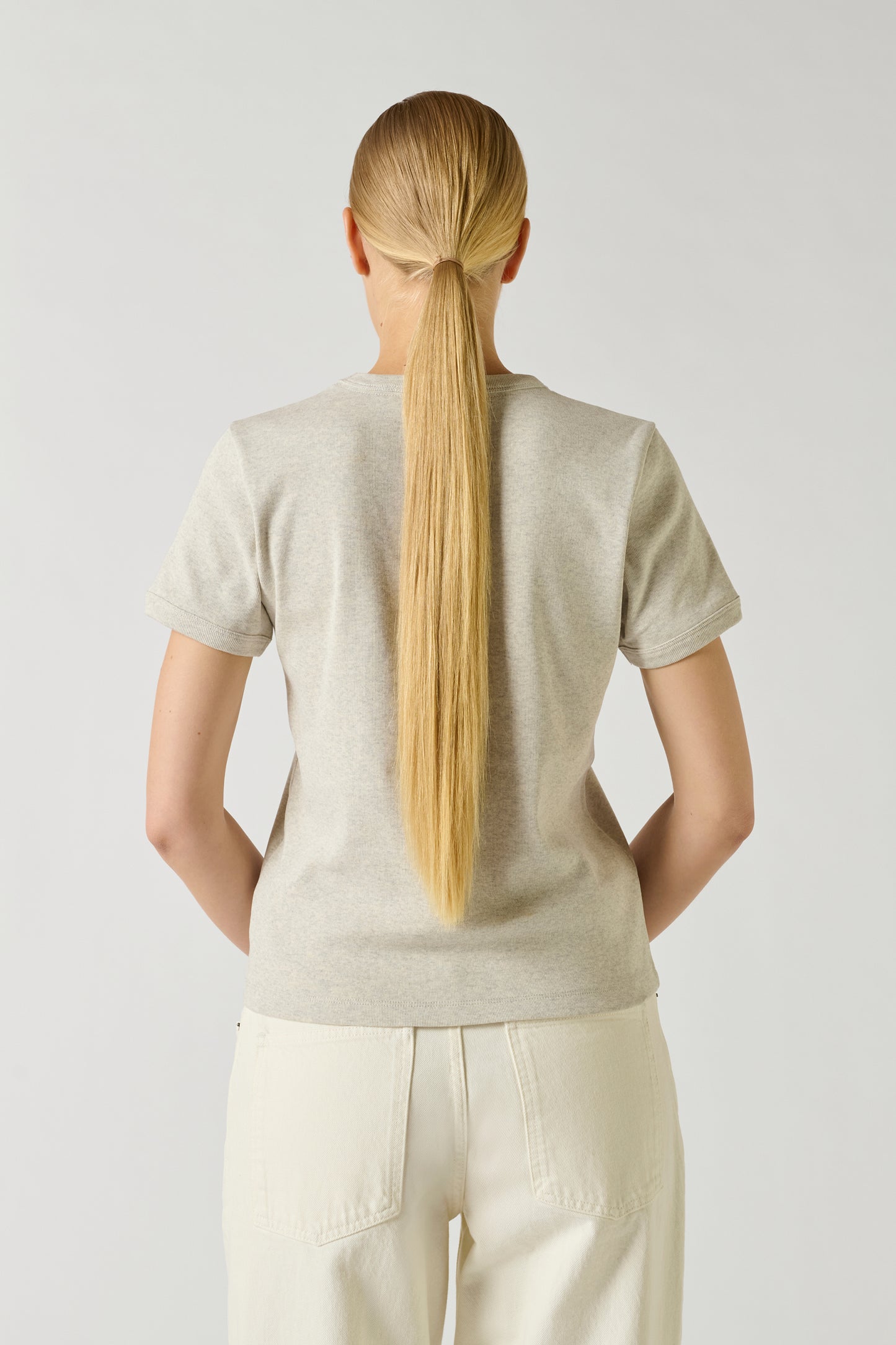 ARISTIDE est un t-shirt en coton biologique tricoté en côtes extra-fines. Les ribs épais soulignent l'encolure et les manches courtes et rondes, et renforcent son petit format près du corps. Notre logo "Soeur" est brodé au milieu devant dans un fil ton-sur-ton.